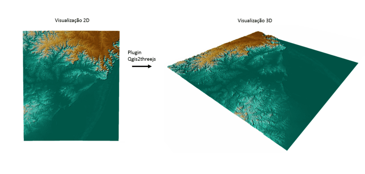 Nesse post venho oferecer uma forma de fazer isso, usando o QGIS e um plugin (complemento) chamado Qgis2threejs (nome esquisito, mas é isso aí mesmo). Os dados usados serão o MDE e o sombreamento apresentados no post anterior, sobre estilização do relevo.