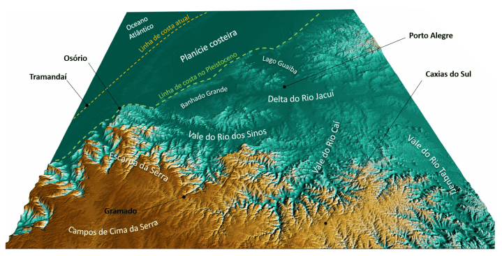 No caso aqui, em poucos minutos eu colei no Power Point uma captura de tela e fiz uma colagem simples, mas que elucida a geografia física dos arredores de Porto Alegre.