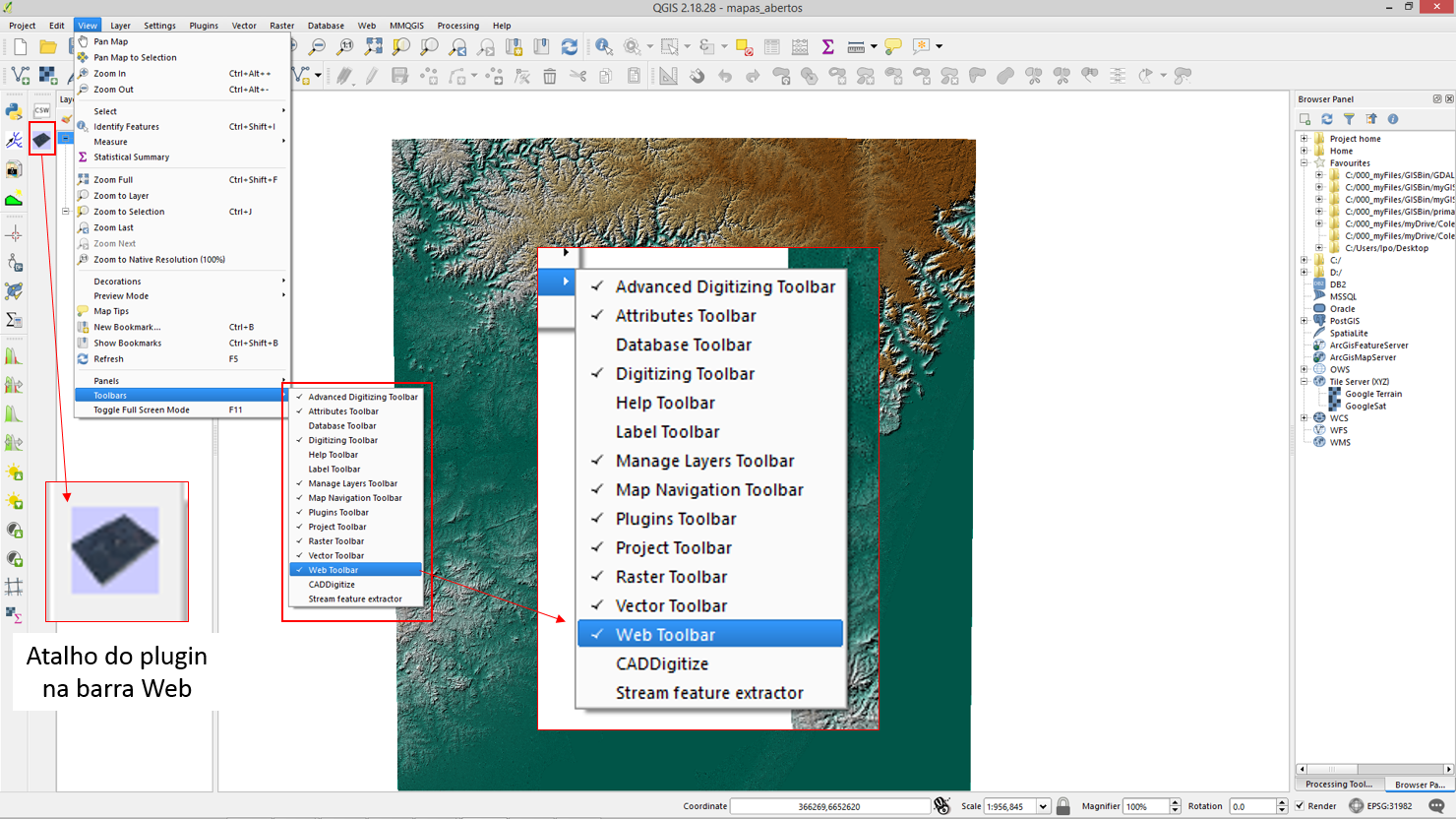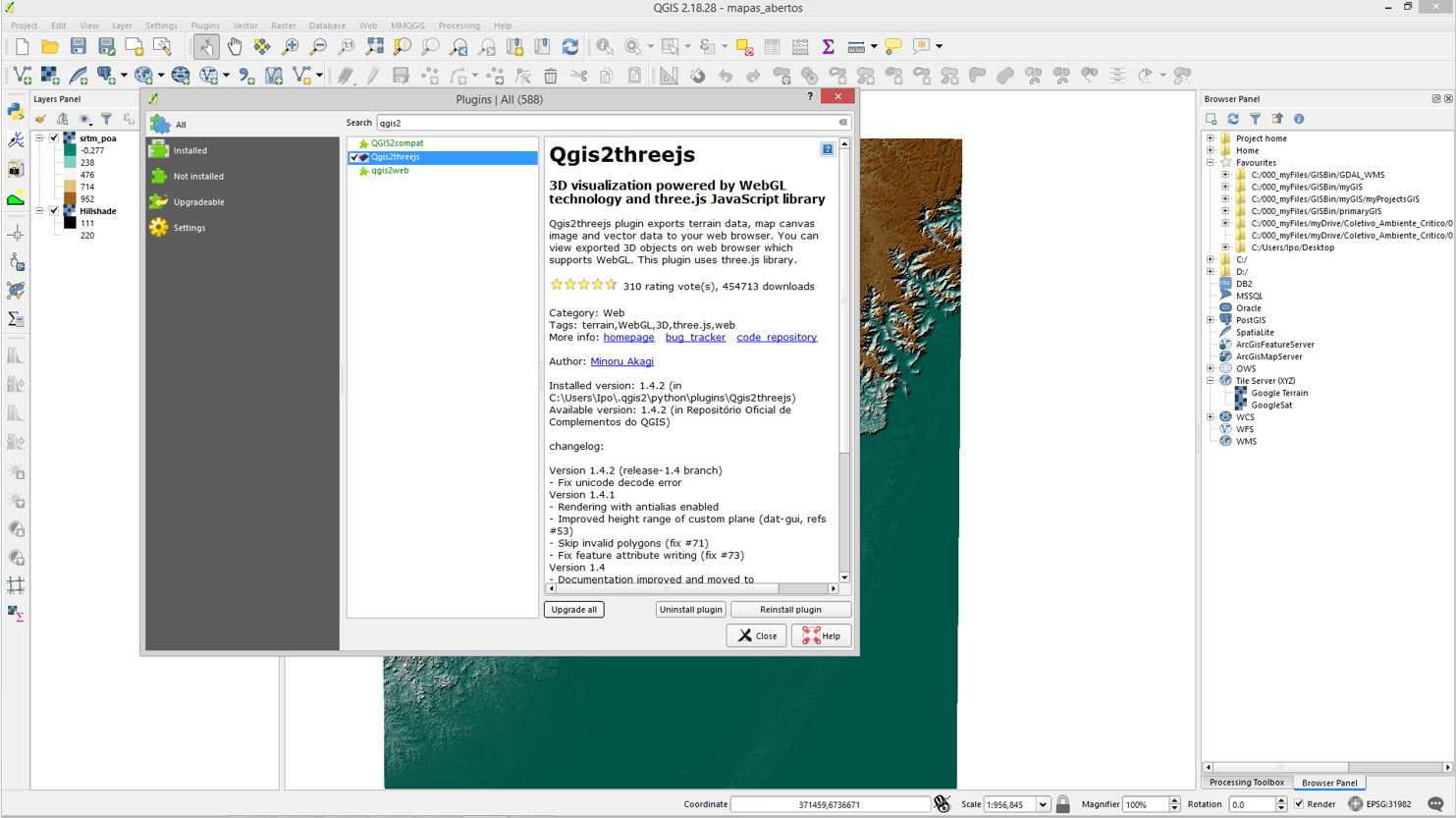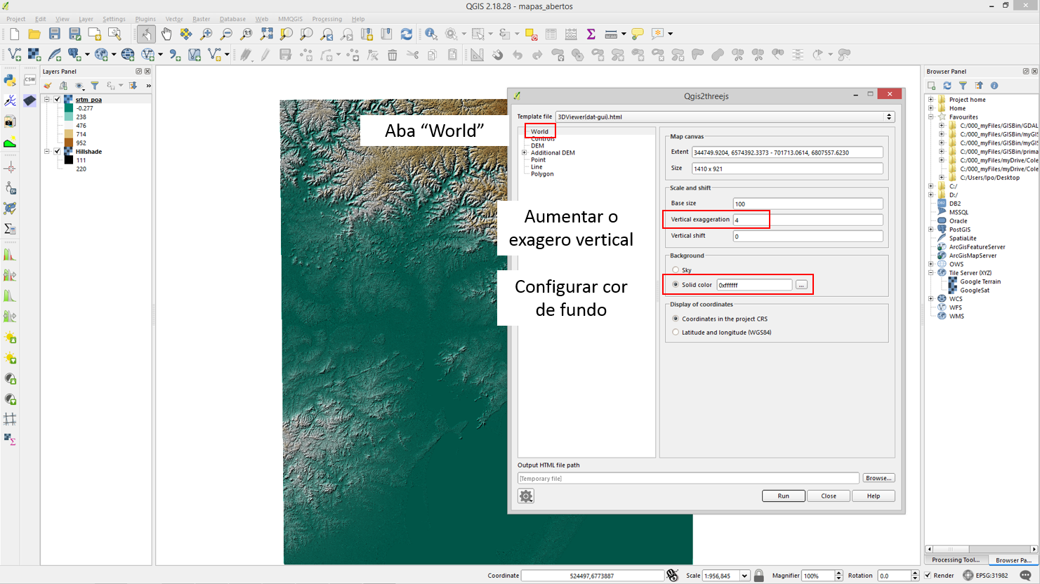 Ainda que simples, é possível configurar o complemento muitas formas distintas. Aqui eu recomendo que se explore, sem medo, as opções. (É possível também visualizar dados vetoriais em 3D, coisa que não vou apresentar agora).