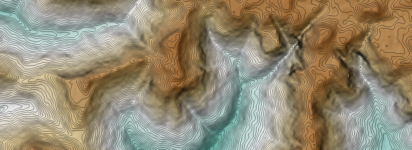 Exatamente como o cume de um telhado, o divisor de águas é bem mais visível com o auxílio das curvas de nível: