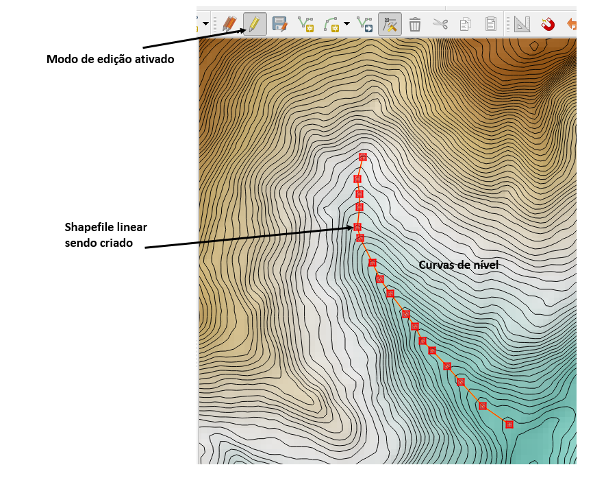 Se você terminar isso em duas horas, terá sido um passatempo divertido. Agora se você tiver que vetorizar por mais de duas horas, cuidado, pois sua sanidade mental estará em risco, sem falar na tendinite de tantos cliques. Nessa situação, recomendo que converta as curvas de nível em um Modelo Digital de Elevação (MDE) e aplique um método numérico para produzir a rede de drenagem, como descrevo mais adiante.