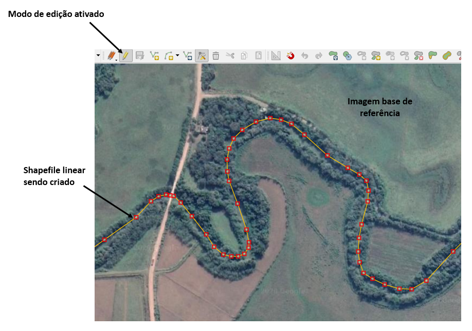 Uma forma cartográfica de produzir a hidrografia é vetorizar a rede manualmente com o auxílio de um mapa base com imagens produzidas por sensoriamento remoto (satélite, aeros, drones). A imagem é um dado que você precisa assumir que valida onde de fato existe um rio ou não. Claro, você precisará interpretar a imagem, o que não necessariamente é uma tarefa trivial. O método é fácil enquanto o rio é largo e seu espelho d’água é plenamente visível. Agora, se você quer uma densidade maior (escala menor, portanto), incluindo os riachos e córregos, a coisa vai ficando complicada pois a vegetação pode encobrir o curso d’água ou ele ser mais estreito que a resolução da imagem que você está usado como mapa base.