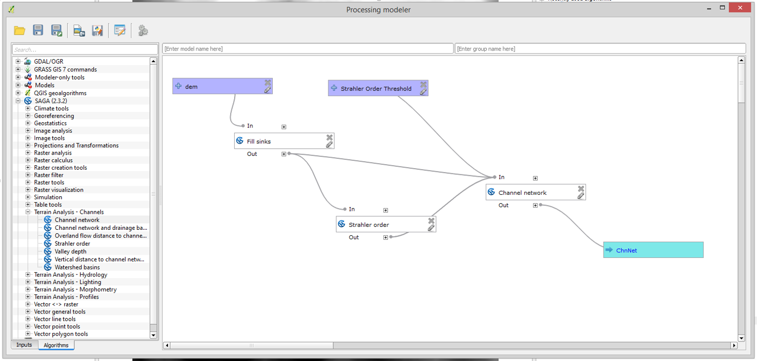 O fluxograma do método numérico pode ser automatizado pela criação de um modelo no QGIS, como na figura abaixo.