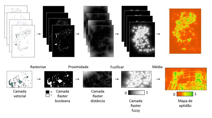 Para compor um índice de aptidão para cada canto do município é preciso sair da lógica booleana e adentrar nos reinos da lógica fuzzy.