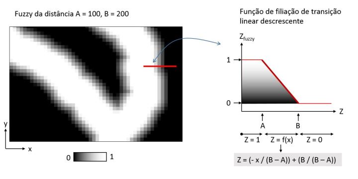 A lógica fuzzy antagoniza a lógica booleana. Na lógica fuzzy, as fronteiras das feições ficam “embaçadas”, “difusas” (por isso, fuzzy). A função de filiação na lógica fuzzy faz transições contínuas entre o verdadeiro e o falso, ou seja a imagem fuzzy apresenta píxeis que variam entre o zero e o um. São os cinquenta tons de cinza do geoprocessamento.