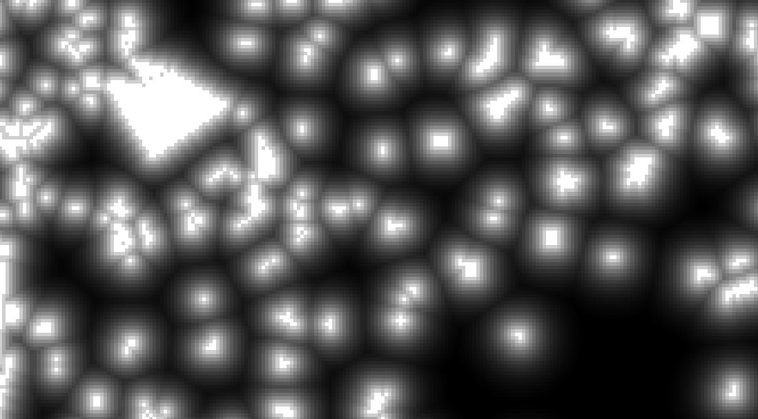 Refletindo um pouco, podemos perceber que a verdadeira variável indicadora que precisamos não é a existência ou não das feições como as escolas, praças e avenidas, mas a proximidade a essas feições. Assim, para cada imagem booleana, podemos criar um raster de proximidade (em: GDAL/OGR >> GDAL/Analysis >> Proximity (raster distance)).