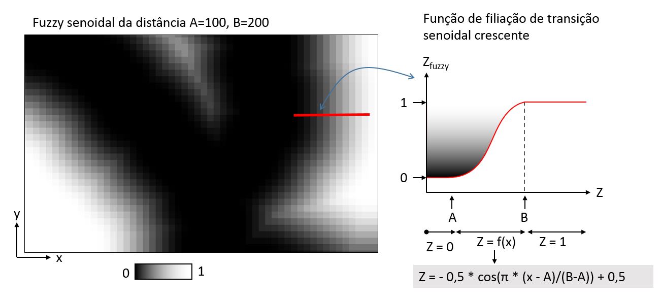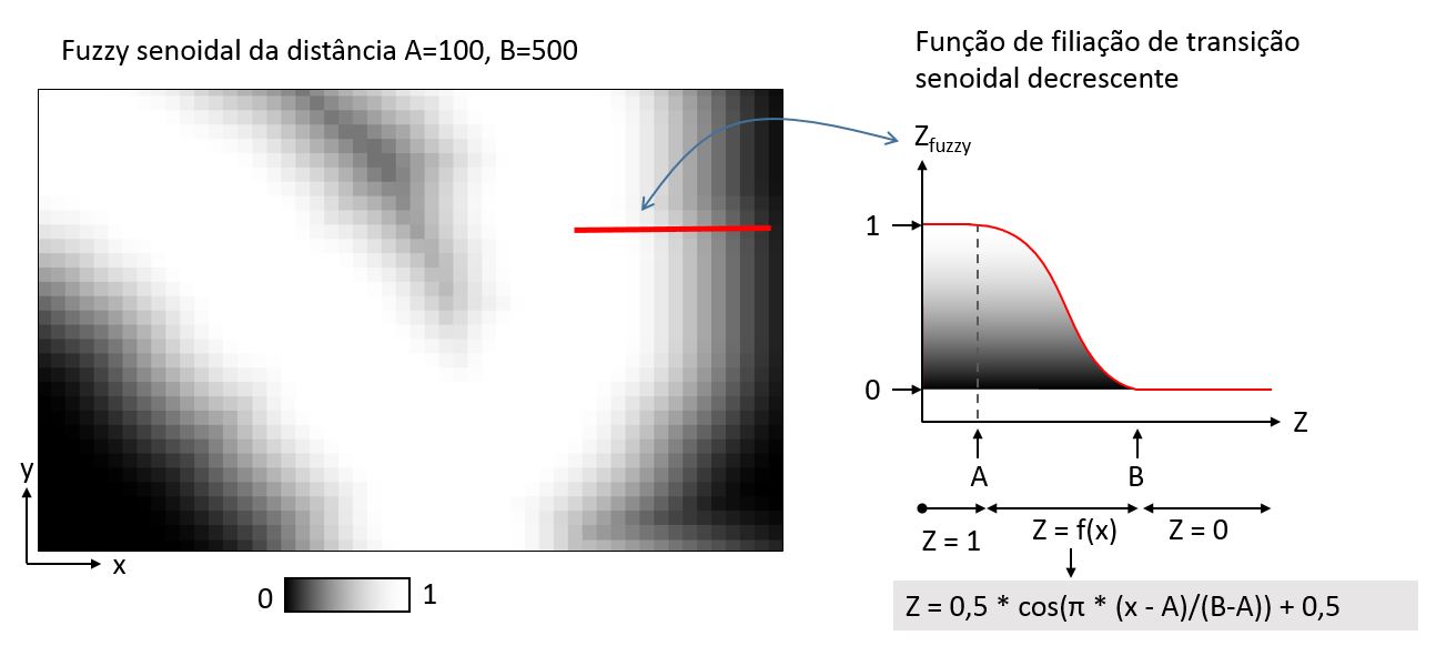 (“proximidade@1” <= A) + (“proximidade@1” > A) * (“proximidade@1” < B) * (0.5 * cos(3.14159 * (“proximidade@1” – A)/(B-A)) + 0.5)