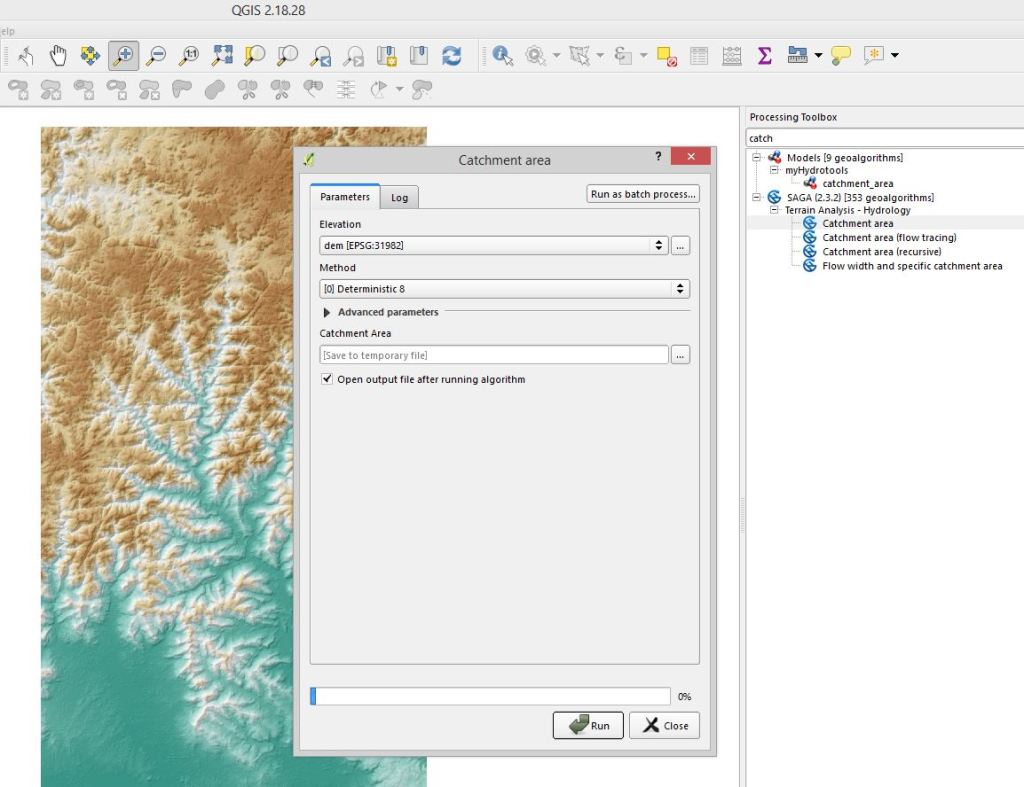 A ferramenta requer apenas que você forneça o MDE (sem depressões) e espere o processamento acabar. Dependendo do tamanho do MDE, esperar bastante.